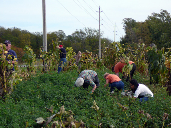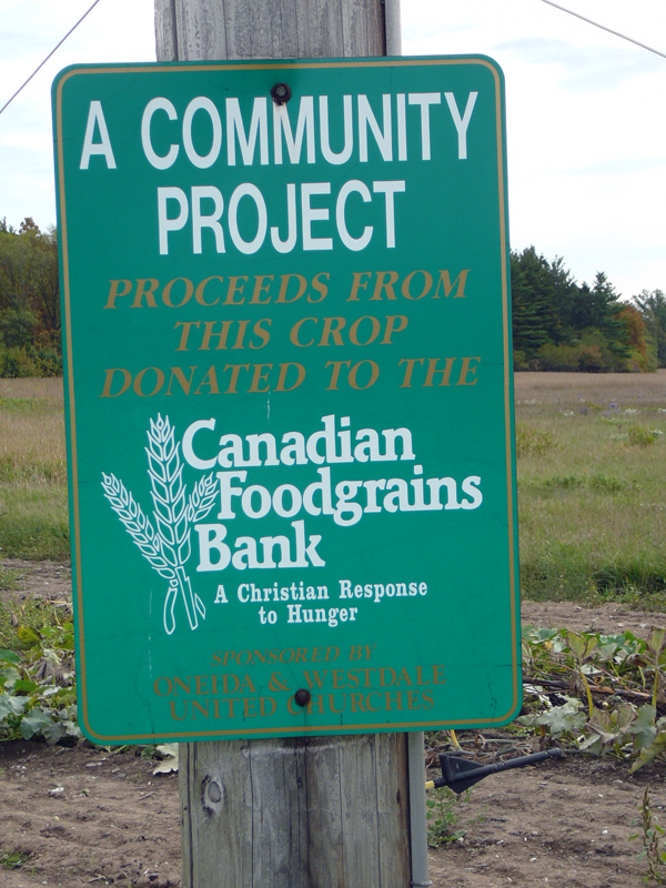 In 2002, Westale’s partnership changed and we linked up with Oneida United, near Hagersville ON. We have both large acerage crops, and a smaller mixed garden planted by our Sunday School families, as well as congregants. The produce from the garden, harvested by both congregations, is used to decorate our churches for Thanksgiving, then sold for CFGB. Both planting and harvesting times give us an opportunity for a potluck luncheon and fun activities. Oneida also provides Westdale with a bale of straw, which is used by our Sunday School to build a scarecrow for our organic vegetable garden.
